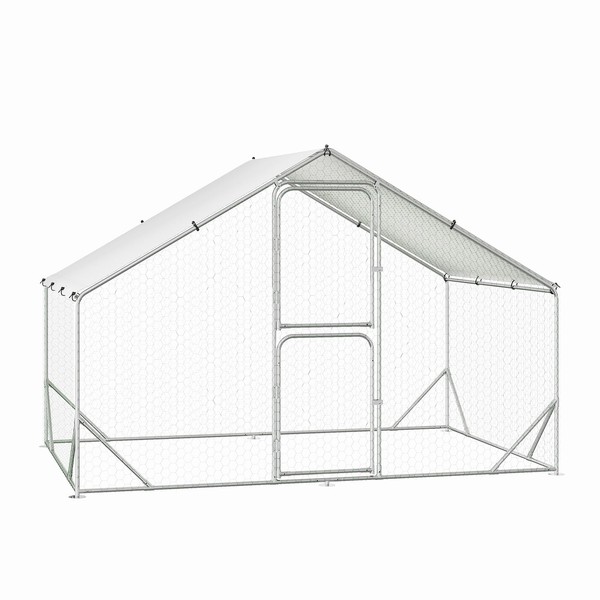 Large Metal Chicken Coop, Chicken Runs for Yard with Cover, Large Chicken Pen with Double Door, Walk in Chicken Coop for Outdoor Farm Yard (6.5'L x 9.8'W x 6.6'H)