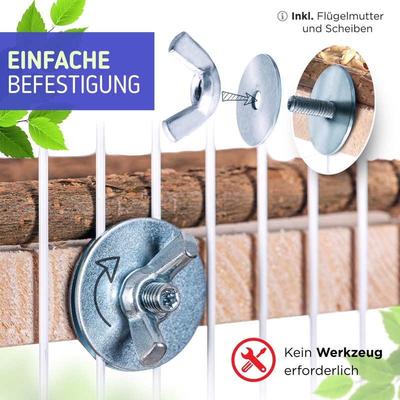 - Easy to attach thanks to the included washers and wing nuts. Quick and safe assembly/disassembly via corner