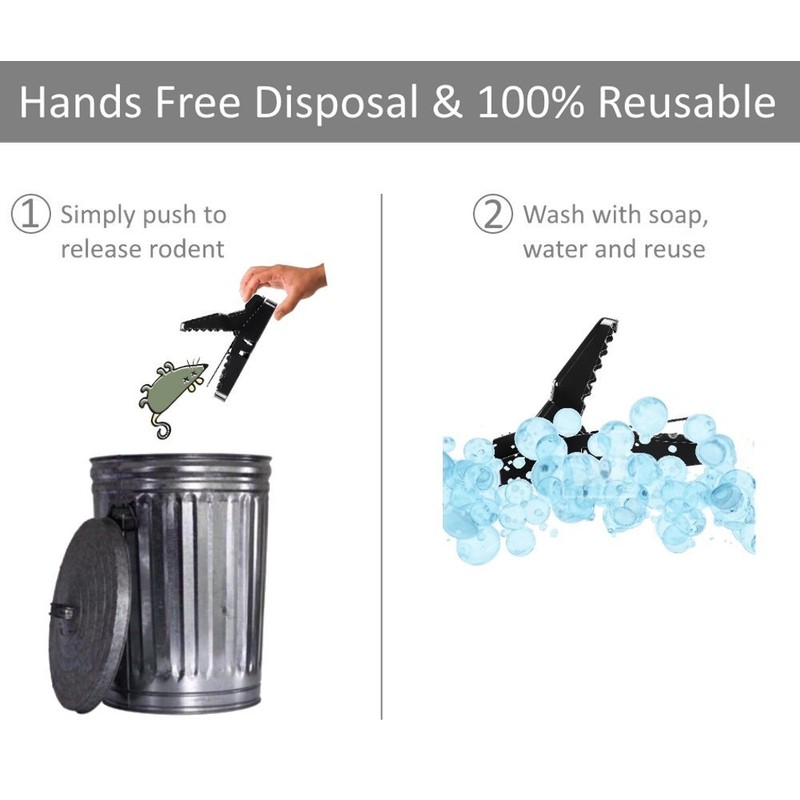 - Reusable and Hands-Free Disposal – This rat trap is washable and 100% reusable so you can eliminate any future pests – When disposing simply lift trap over trash and press to let it go without ever having to touch it