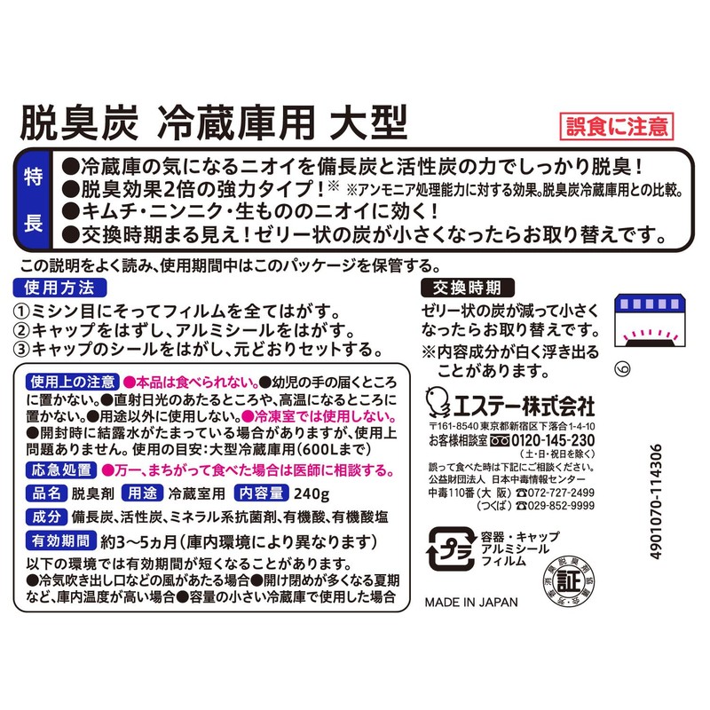 • (Put Deodorizing Charcoal into the Fridge) Deodorizes your refrigerator with the power of Binchotan charcoal and activated charcoal