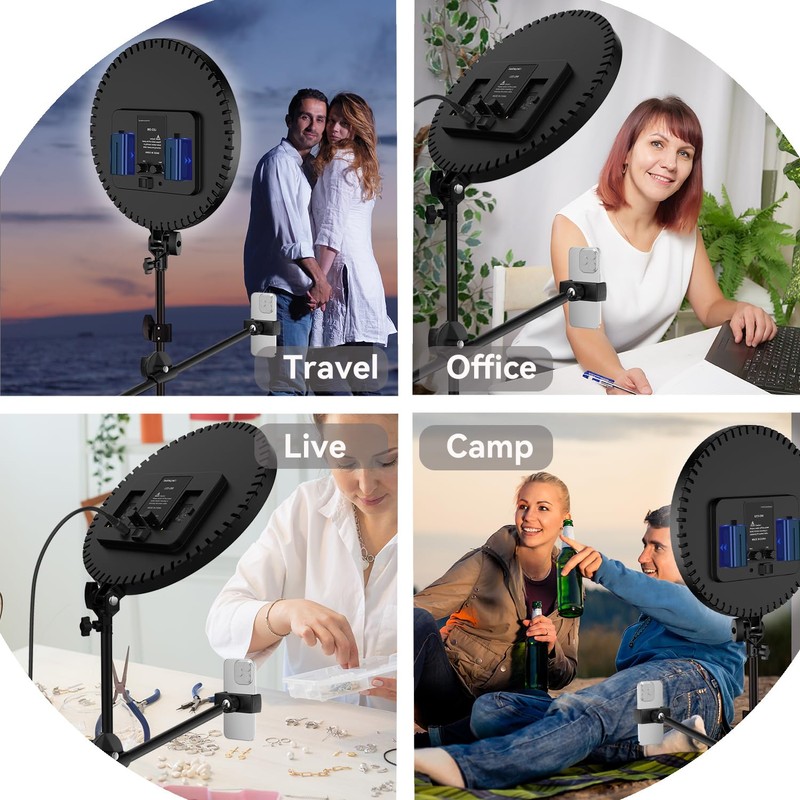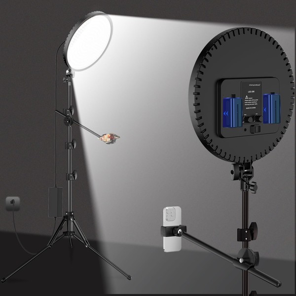 - 【55W Full-Screen & High Brightness】-Upgraded big ring light panel design, a maximum illumination of 6500K, to illuminate range wider, softer uniform lighting will give a brighter and more professional workspace,You don't have to worry about the brightness of the light and return it.If you are taking pictures and videos, we recommend using two lights at the same time.To achieve the best results.