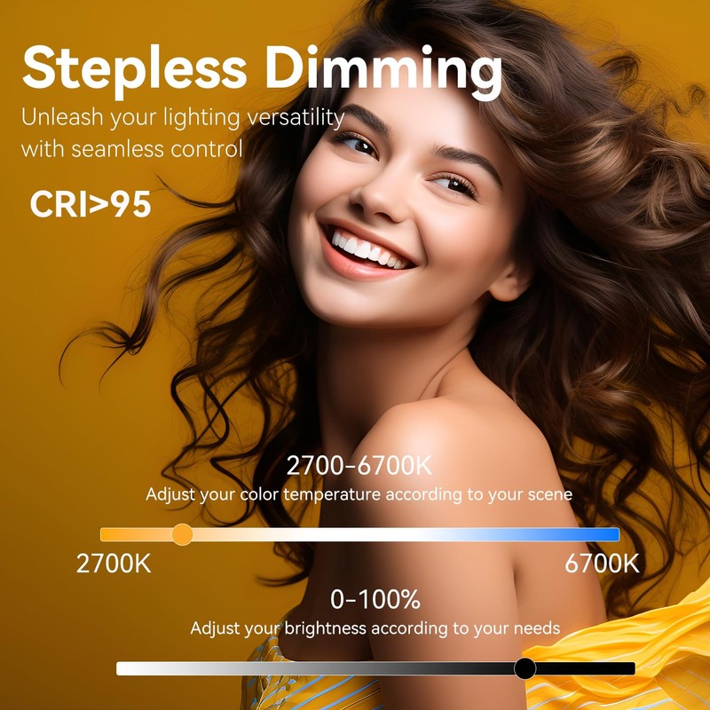 - 【Multifunctional Ring Light】-Our ring light with stand provides 3 color temperatures (White, Warm and Natural, 2700K-6500K), and 10 brightness levels(10%-100%), CRI>95+, Making the display effect more natural and restoring true, It improves the quality and feel of your online content creation, photography, and selfies