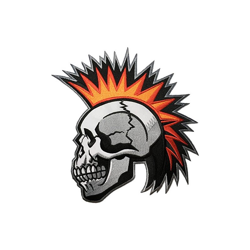 [Large Size] Papapatch Mohawk Skull Ghost Skeleton Punk Rock and Roll Heavy Metal Jacket Vest Costume Embroidered Sewing on Iron on Patch (Iron-Mohawk-Skull-Large)