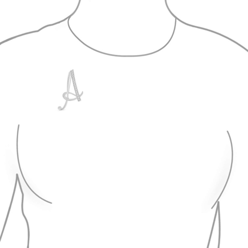 Large Statement ABC Pave Crystal Cursive Script Monogram Letters Alphabet Initial B Scarf Lapel Pin Brooch for Women Silver Plated