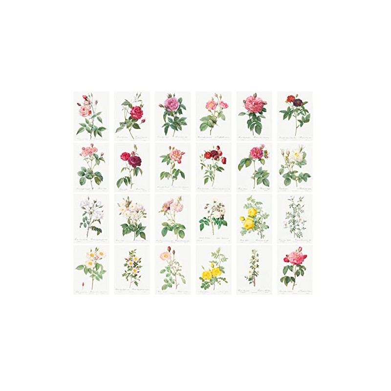 Large Stickers 24 pcs (2.5"x3.5" Each) Roses Flowers Vintage Botannical Books Illustrations by Redoute Retro Postcards Greeting Card Reprint