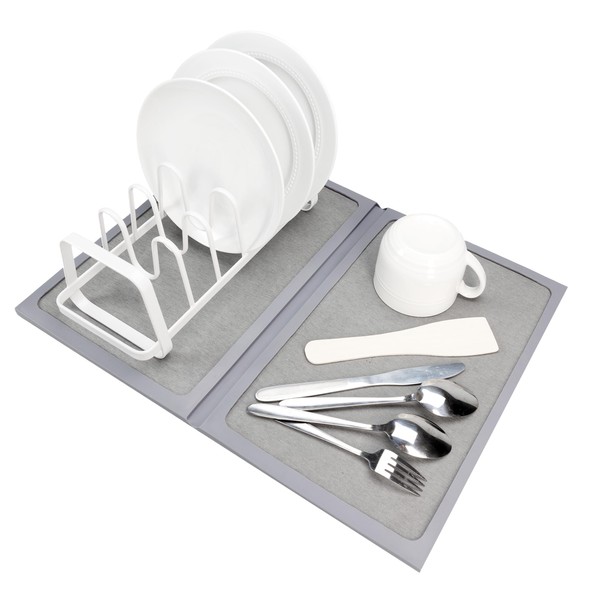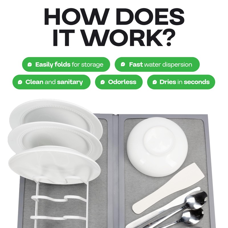 - FOLDABLE & SPACE-SAVING: The innovative foldable design allows you to collapse the drying mat quickly for convenient storage when not in use. Ideal for both spacious and compact kitchens, it provides practical functionality without taking up extra space.