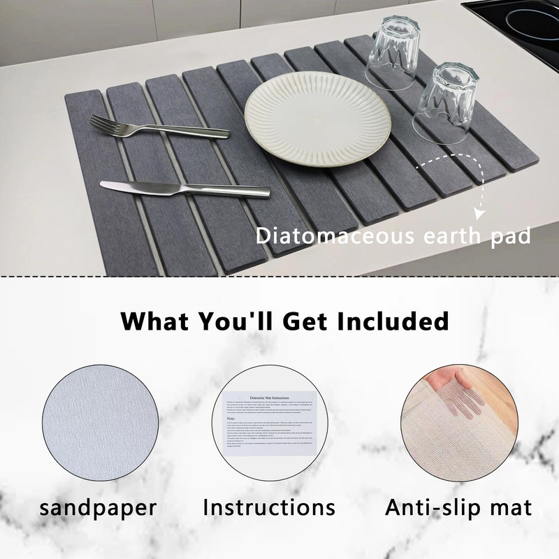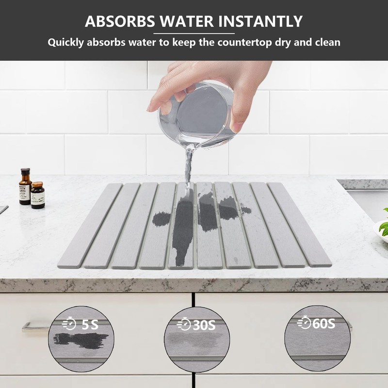 - Strong practicality: Our stone drying mat can be folded quickly, which can save a lot of space when not in use. When needed, you can open it and use it, or you can fold it in half. This drying mat has strong water absorption capacity and fast speed. It can absorb water within one minute when there is dirt on the surface of the drying mat.