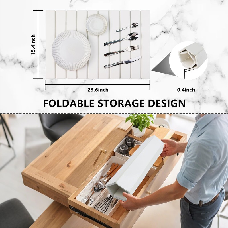 - Related accessory parameters: The unfolded size of our dish drying mats for kitchen counter is 23.6 inches * 15.4 inches, and can be rolled into a roll of 15.4 inches * 4.7 inches * 4.7 inches after folding, which is convenient for storage. We also considerately equip you with a 17.7 inches * 13.7 inches anti-slip mat and sandpaper with a diameter of 2.95 inches for dealing with stains, as well as an instruction manual.