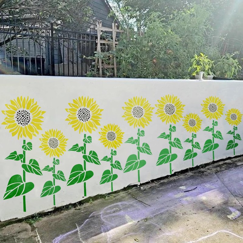 - Flower Decor: These large sunflower stencils are ideal for painting decorative elements on garden fences, doors, room walls, tabletops, furniture, and backsplashes