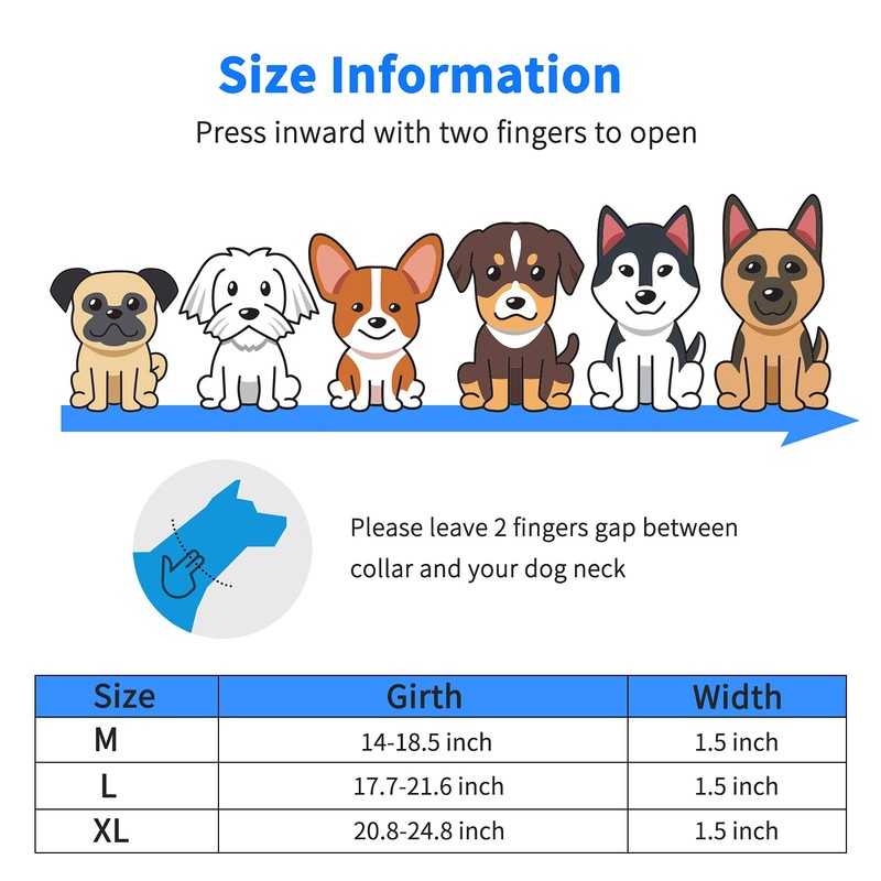 - 【Use Widely】Dog collar is great for dog training, patrolling, hiking, working, walking, runing and hunting. Suitable for Medium and large , xl dogs, such as: German Shepherd, Border Collie, Rottweiler, Great Dane, Doberman Pinscher, Golden Retriever, Husky, Labrador, Alaskan Malamute.