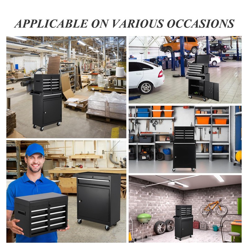 - ✔ MULTI-FUNCTIONAL TOOL CHEST WITH DRAWERS:This tool cart on wheels can be disassembled into two:4-drawer tool box top chest and a rolling tool cabinet, which can be used separately or together according to your needs. Besides, the top tool box can also be stored inside the bottom cabinet to save space.