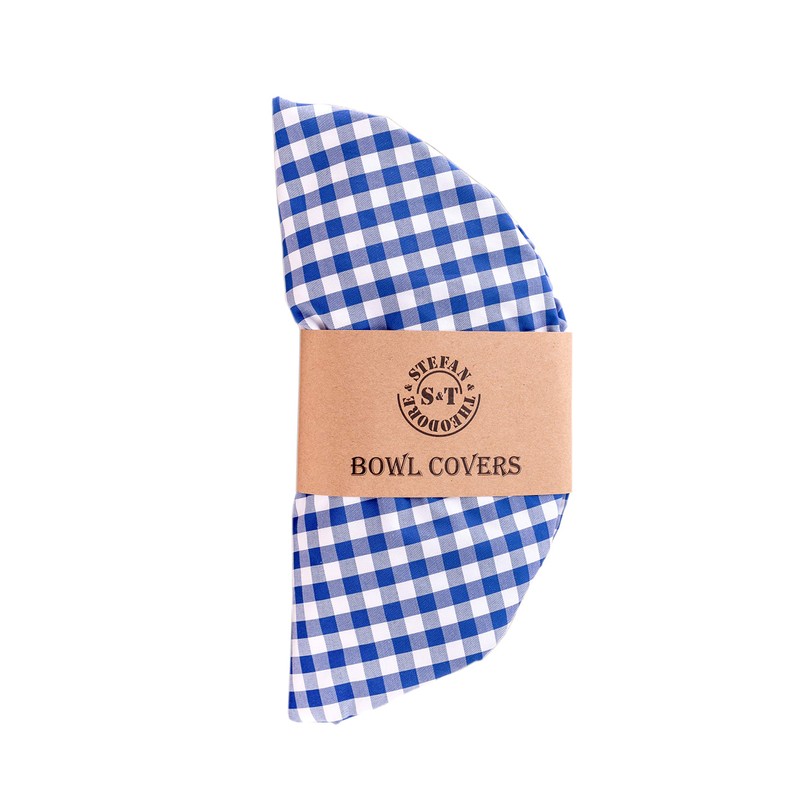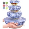 Large US Size for Handmade Reusable Cotton Fabric Bowl Covers - Two Layers of Fabric (Set of 4, Blue plaid)