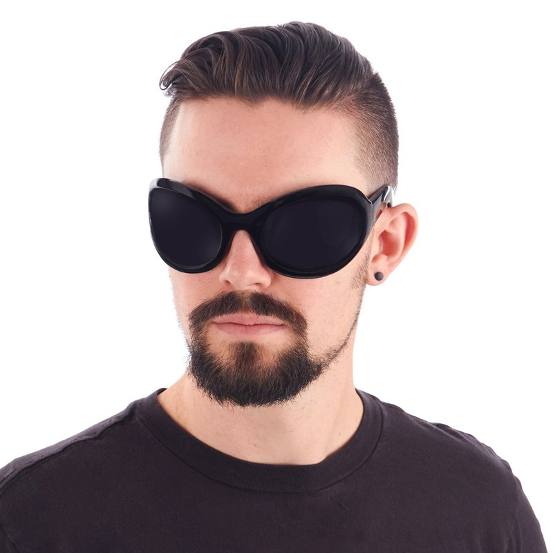 Largemouth Mens Industrial Style Wrap Sunglasses (Black)