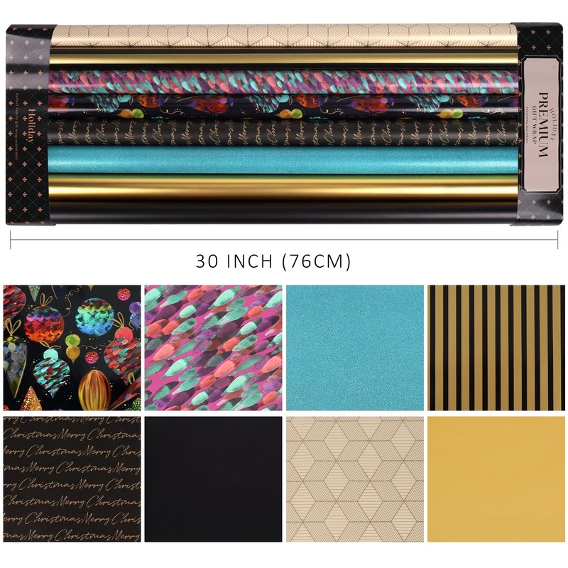 - ๐ฆ๐ถ๐๐ฒ: Each roll measures 30 inches wide by 10 feet long, providing 25 square feet of wrapping paper. With 8 rolls in the set, you get a total of 200 square feet.