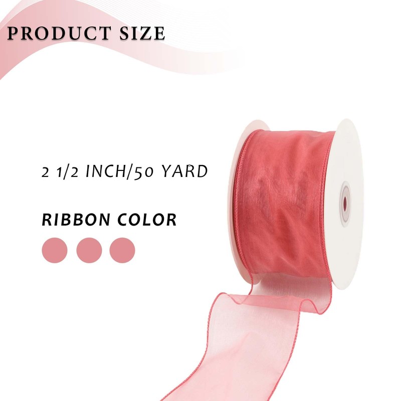 LaRibbons Organza Wired Ribbon, Rose Sheer Ribbon for Flower Bouquet, Gift Wrapping, Wedding Invitations Wreaths Wrap, Party Decoration, 2 1/2" | 50 Yard