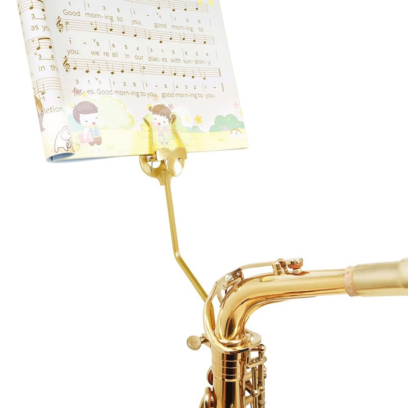 - ELEGANT GOLD DESIGN The music clip stand in elegant gold enhances your musical taste, complements the sound of your saxophone and adds a touch of brilliance to your performance.