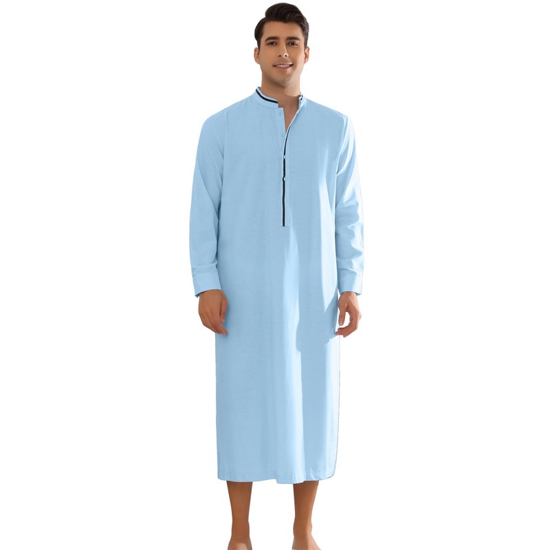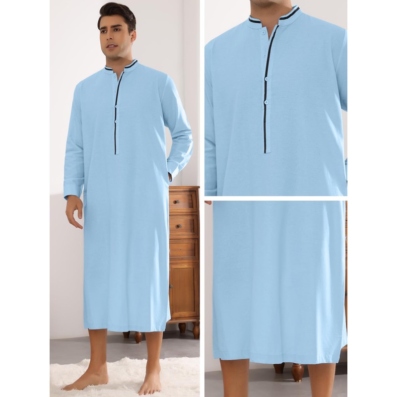 Lars Amadeus Blue Nightgown for Men's Contrast Color Stand Collar Long Sleeves Button Closure Nightshirts XX-Large