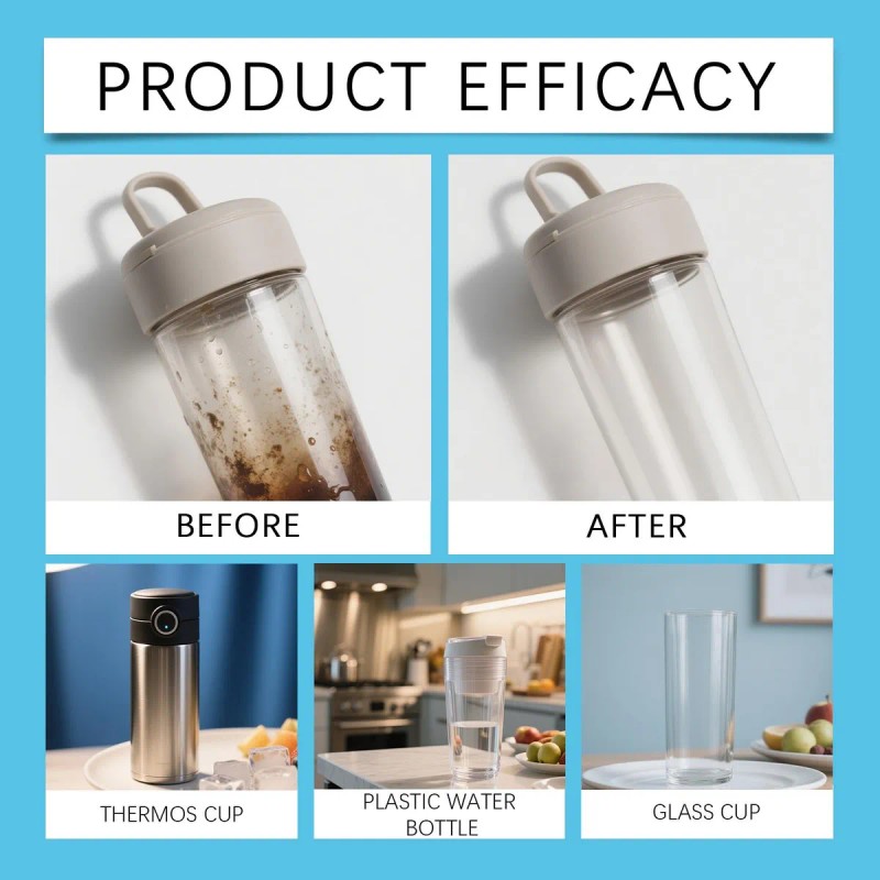 **Potente eliminador de manchas**: estas pastillas limpiadoras eliminan las manchas y los olores persistentes, garantizando que tus vasos no solo estén limpios, sino también frescos y agradables de usar. 3.