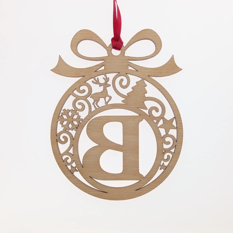 Laser cut Christmas tree bauble decoration: Letter B