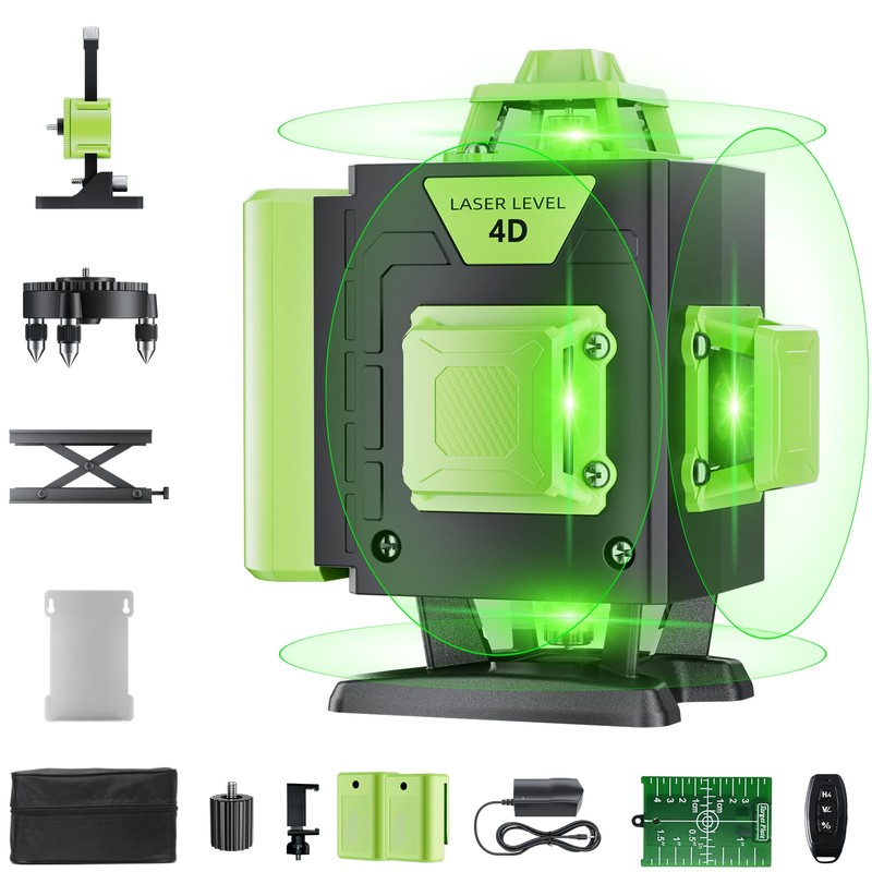 Laser Level 360 Self Leveling,16 Green Cross Line 4D laser Level for Tiling Floor Construction and Picture Hanging, High Accuracy Nivel Level with Self-leveling,2 Batteriy Remote (Pocket Size)