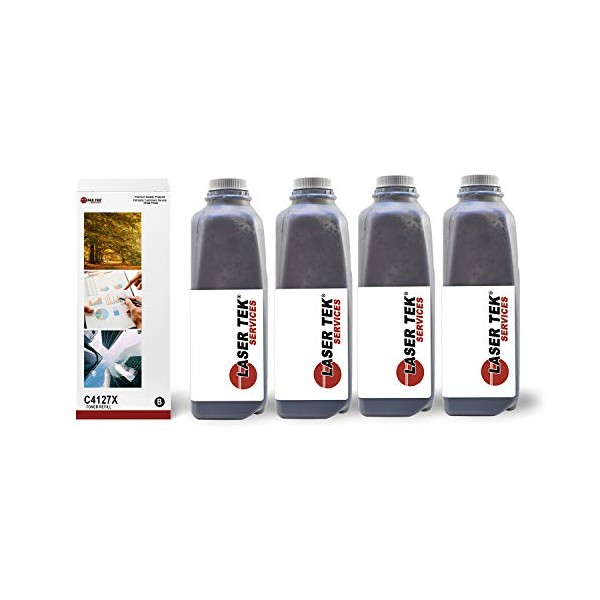 Laser Tek Services Compatible HP 27X C4127X High Yield Toner Refill Kit Replacement for HP Laserjet 4000 4000n 4000se 4050 Printers (Black, 4 Pack)- 10,000 Pages