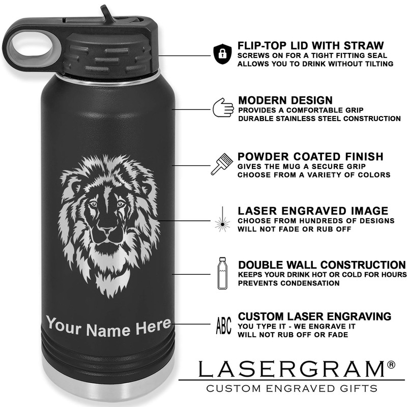- Personalized just the way you want it! Each water bottle is laser engraved with the image that you see in the photo along with your own name or custom text.