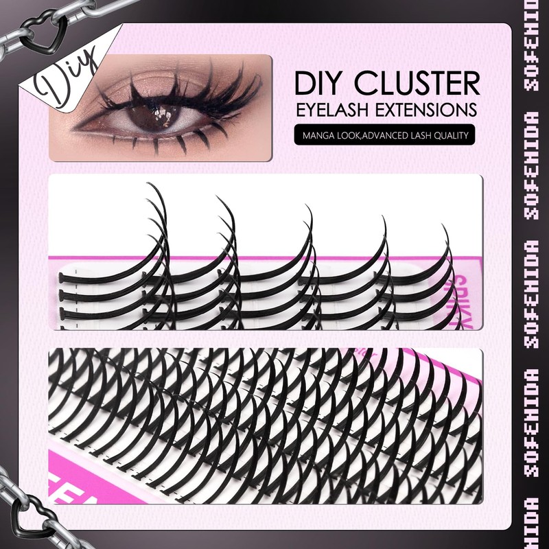 - Create a stunning look with our combo of manga - style individual lashes and long, thick 100D lash clusters in a stable D - curl.Our spiky lash clusters, inspired by Russian styles, add an edgy charm. Layer them for a dramatic, full - bodied effect.The D - curl and spiky design offer endless creativity. Ideal for special events or daily wear, this lash set helps you create eye - catching, personalized looks.