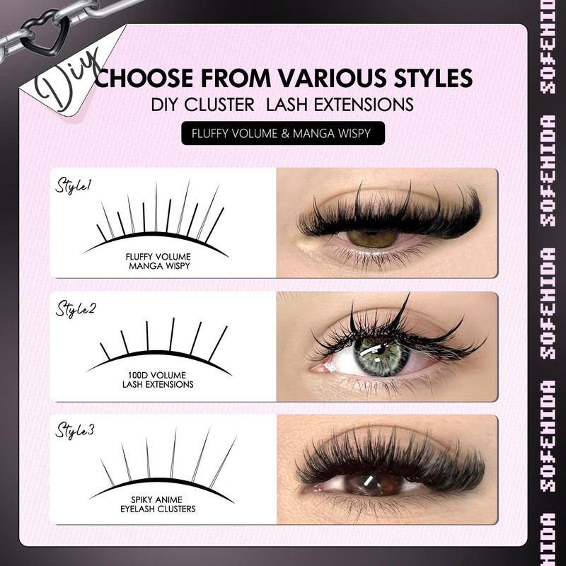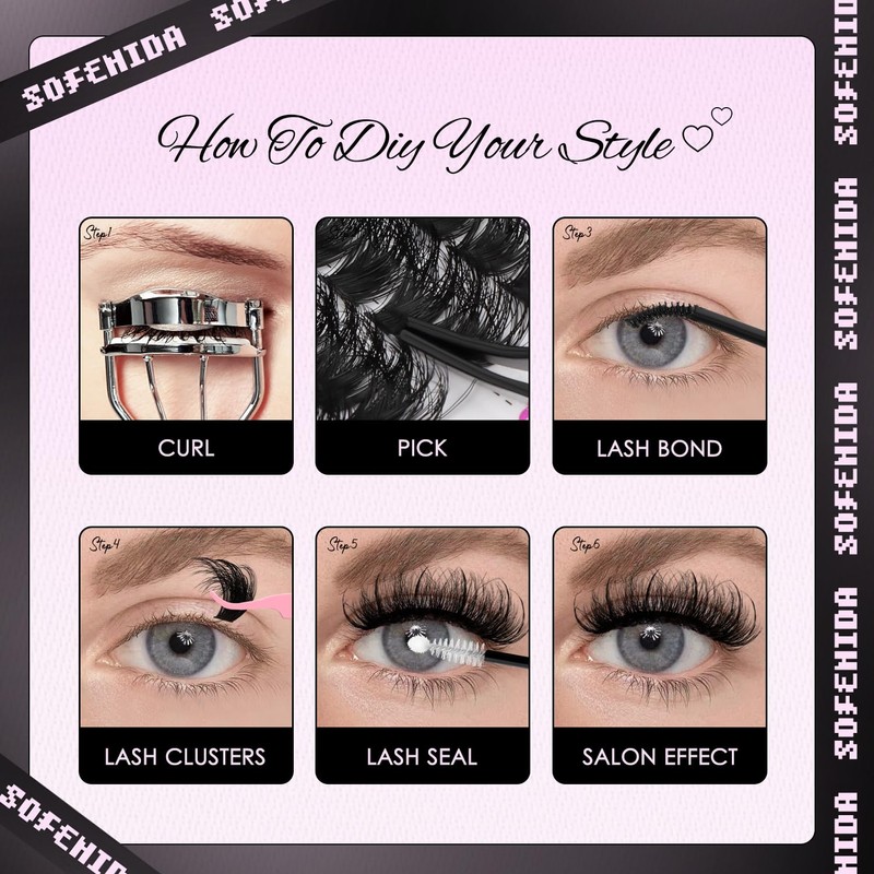 - Long-Lasting & Reusable Lash Clusters: SOFENIDA eyelashes clusters are user-friendly and perfect for beginners and makeup lovers alike. When cared for properly, these durable lash clusters can be reused 3-5 times, providing excellent value and versatility.