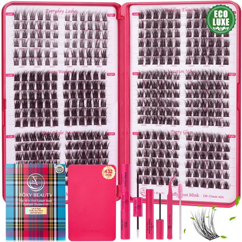 - COMPLETE KIT: Contains 432 pieces of reusable lash clusters, bond, seal, and application tools in a convenient pink storage case