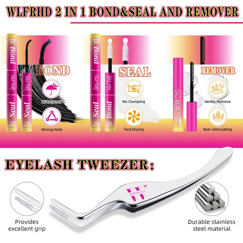 - Beginner-friendly Lash Kit:1.Curl and comb your natural lashes gently. 2.Brush a thin layer of lash bond under your natural lashes. 3.Pick up lash clusters from the root. 4.Apply cluster lashes under natural lashes 1-2mm away from the eyelid.