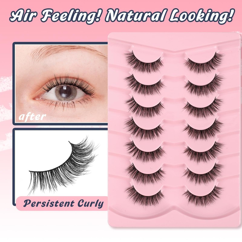 • Vegan & Reusable: 7 pairs lashes pack. The fake lashes use ultra-light soft synthetic fibers, cruelty-free, skin friendly and all day curl lasting. Appy in a minute, perfectly suit for DAY-TO-DAY use, vacation party or date and all of age