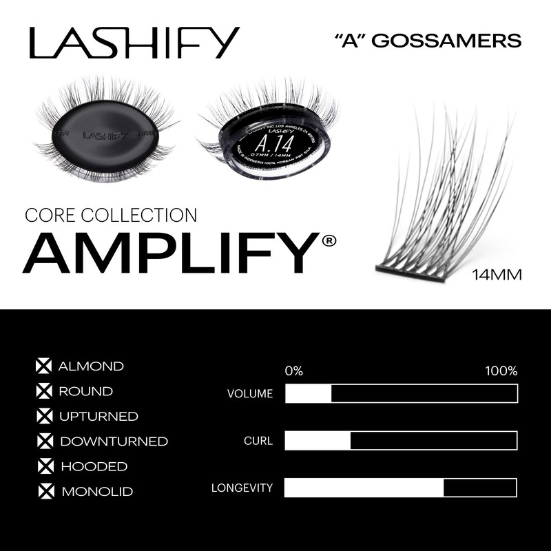 - A is for Amplify. From Lashifys Core Collection, The Amplify Gossamer is a natural, delicate, wispy lash with a thin, flexible spine. Made for every day, effortless wear.