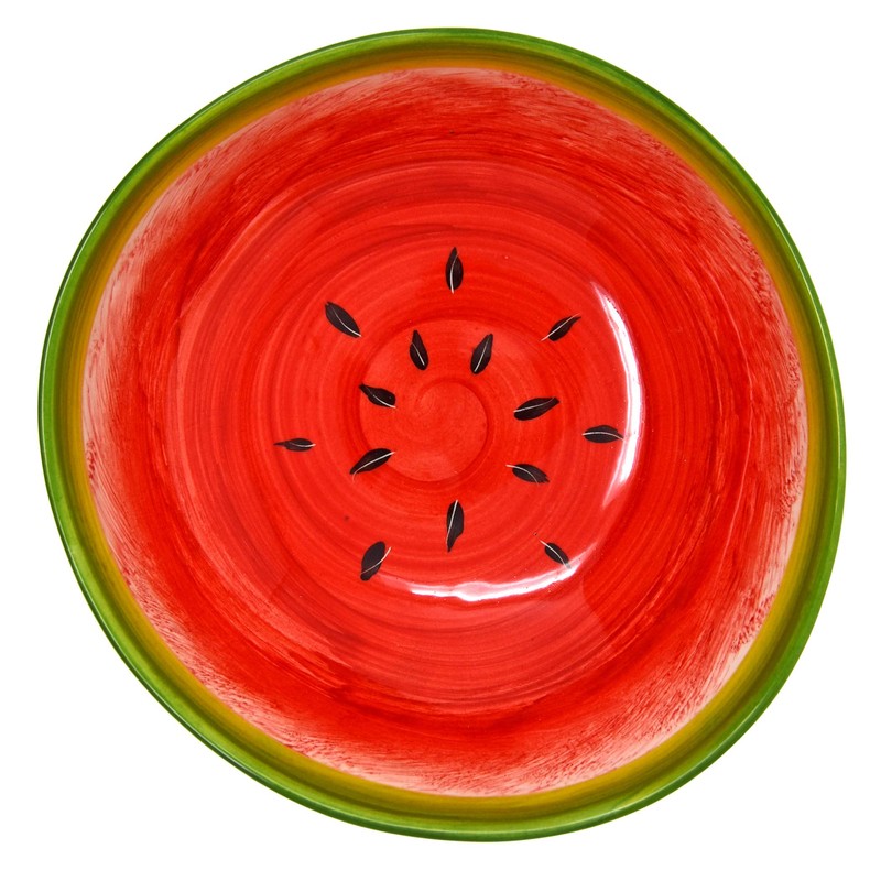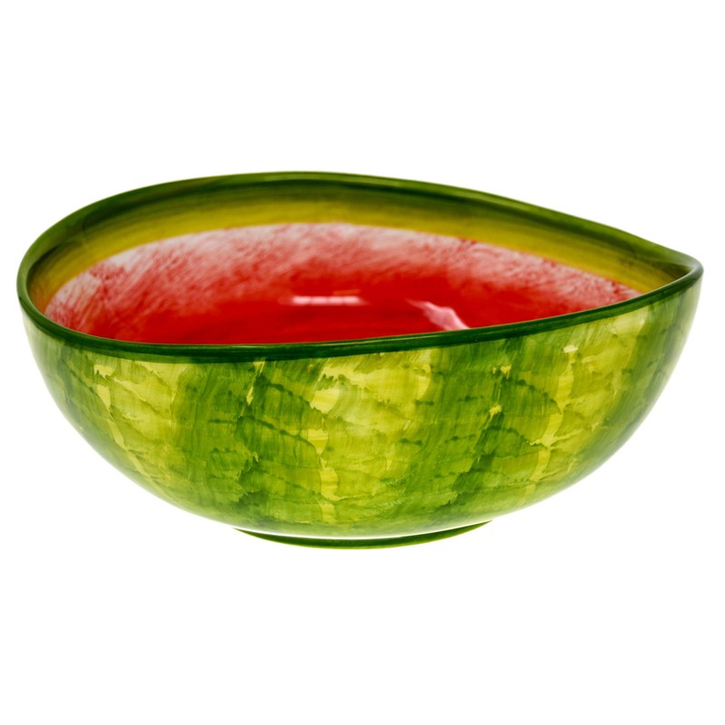 - Green outside and red inside - this high-quality ceramic bowl is painted like a melon. The decorative bowl features black cores as the icing on the cake.