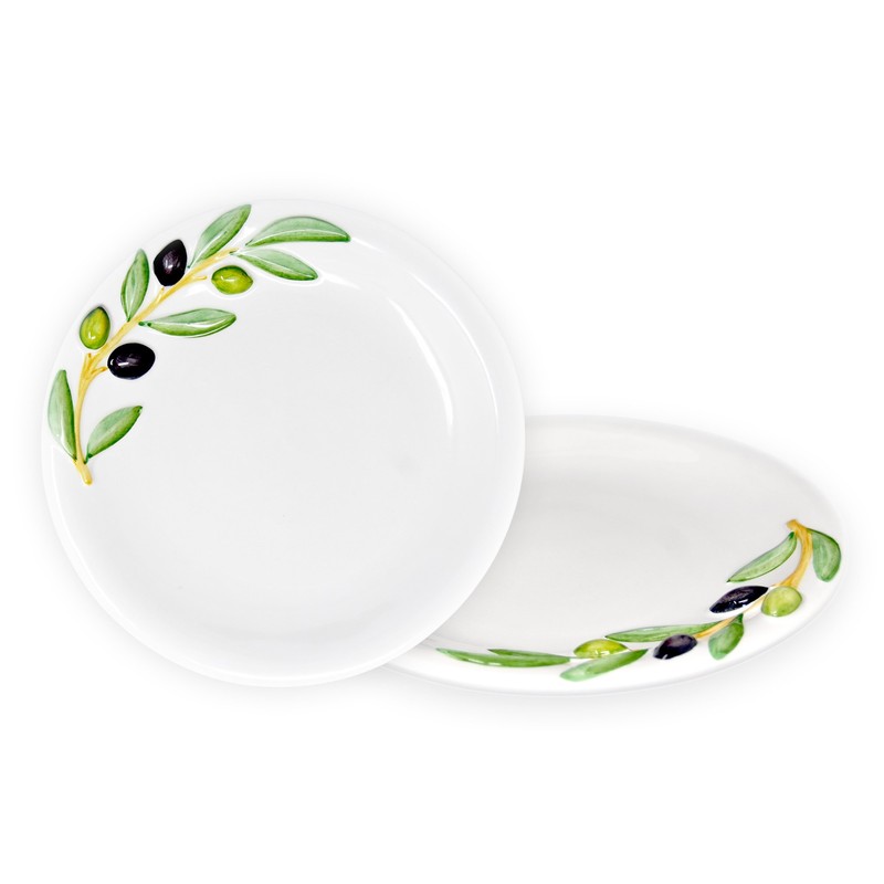 - With the pretty relief decoration in the shape of juicy olives on the serving plates in a gift set, a touch of Italian flair attracts you.