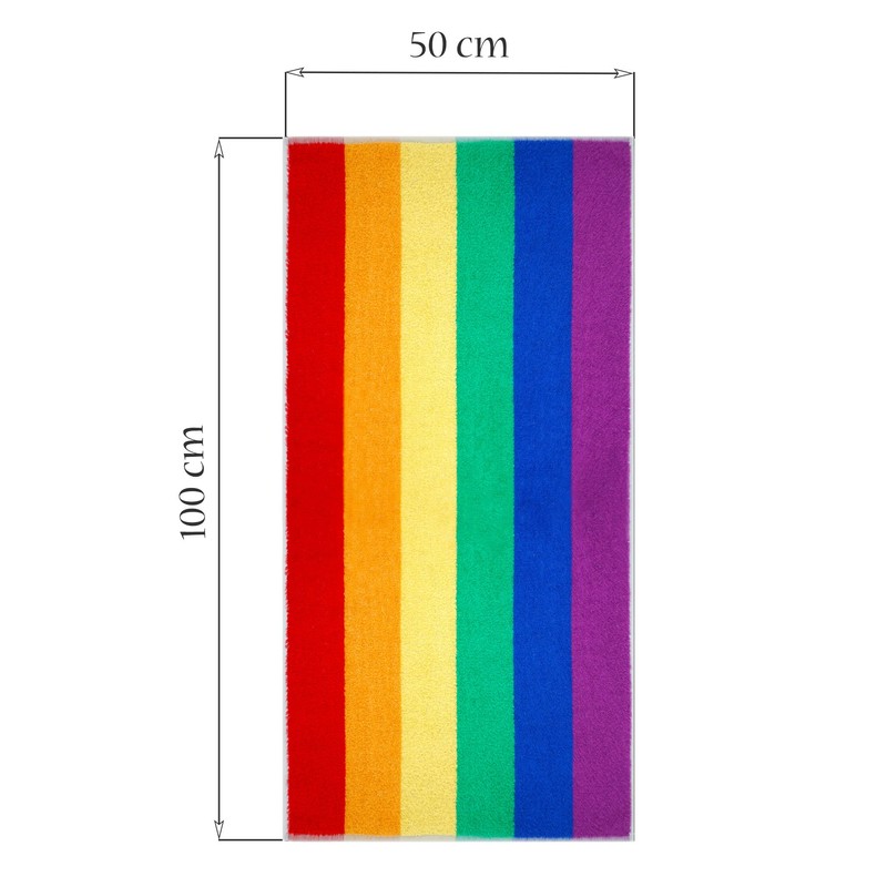 - Thanks to the rainbow stripes in red, orange, yellow, green, blue and purple, our 2 pieces of high-quality cotton towels are an absolute eye-catcher everywhere.