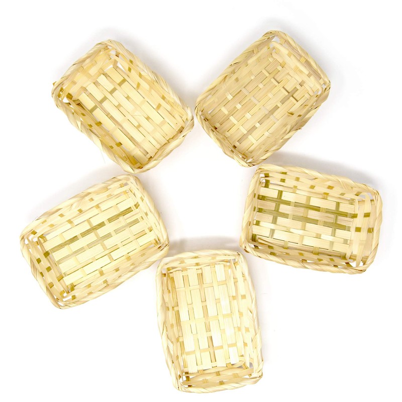 • The rectangular gift baskets in the available set of 5 and 10 are ideal for craft and serving. Simply wonderfully woven bamboo baskets!