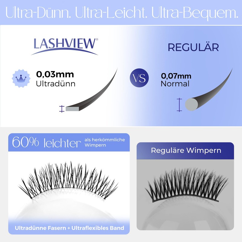 - 【Für einen natürlichen bis dezent glamourösen Look】Ob Nude-Make-up oder softer Abendlook – Lashview künstliche Wimpern passen sich jeder Gelegenheit an. Kein Verkleben, kein starres Gefühl – einfach ein natürlicher Augenaufschlag mit Stil