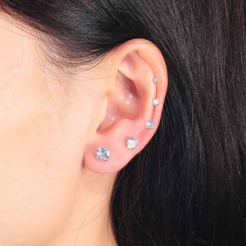 - Earrings Size: 1 Set=5 Pairs white CZ stud earrings,Shiny white cubic zirconia:AAA+ 2-6MM cubic zirconia stone are available In 5 sizes, 2MM/3MM/4MM/5MM/6MM.Different size allow you to have more choices in match daily wear.Total weight:7 g