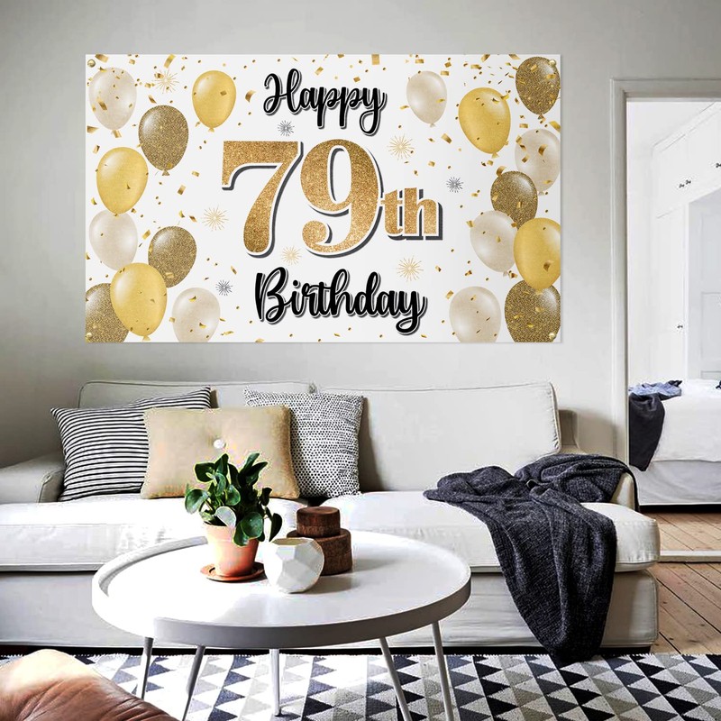 - [WAHT YOU GET]:1pcs "Happy 89th Birthday" gold large backdrop banner and 2pcs rope.You can cut the rope length what you need.Easy to use!