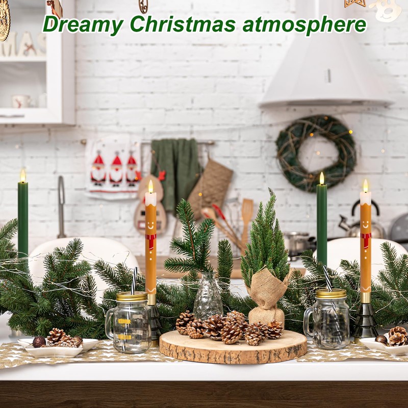 - Festive Gingerbread Man – Each LED taper candle features a charming gingerbread man motif, instantly bringing a cheerful, holiday-ready look to your home décor