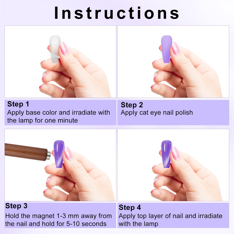 - Produktgehalt: Sie erhalten 1 3-in-1-Katze-Augenmagnete, 2 Stahlball-Magnetstifte und einen Magneten, einen vollständigen Satz, um Ihre mehrfachen Designanforderungen zu erfüllen und Ihnen bei der Erstellung professioneller Nagelmuster zu helfen.