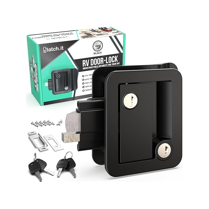 LATCH.IT Black RV Door Lock Replacement | Premium RV Door Handle & Camper Latch with 4 Keys | Trusted Trailer Lock for Travel Camper | Fits 2.75"x3.75" Holes | Travel Trailer Locks Replacement