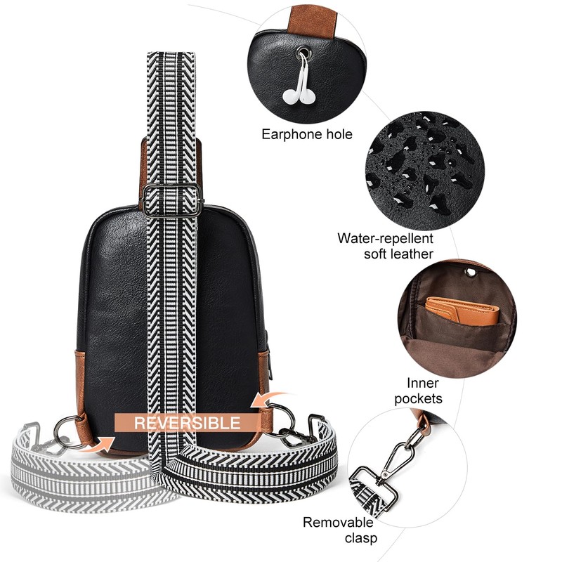 LATMAP SMALL Sling Bag Fanny Packs For Women Men Mini Crossbody Chest Belt Travel Bag Purse Handbag Faux Leather Fashion Cute,Black and Beige with Brown