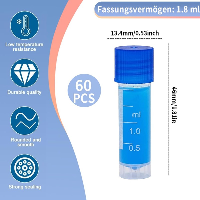 - PRECISE SCALE Frozen test tubes with clear scales ensure accurate measurement results and easy to read liquid volume. Transparent material, the status of the sample is visible at a glance, worry-free transportation, and you can capture quality changes anytime and anywhere