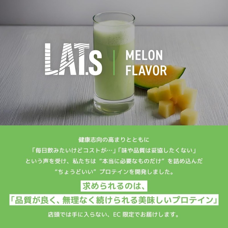 LATs Whey Protein Powder 1kg/35.27 oz – Melon Flavor – 11 Essential Vitamins – Made in Japan – by MY ROUTINE