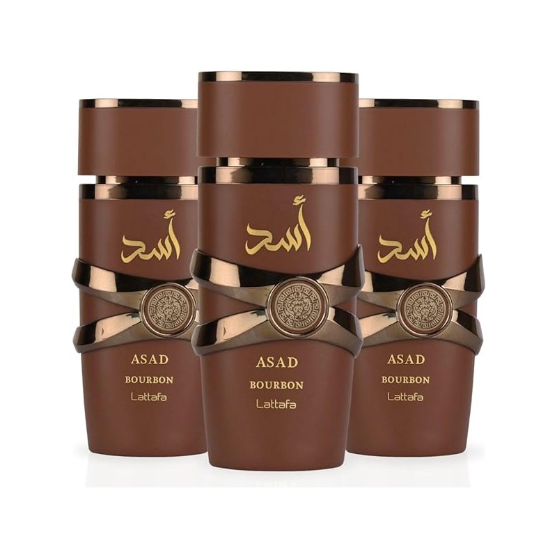 LATTAFA Asad Bourbon Eau De Parfum Spray 100ML (3.4 OZ) A Rich & Inviting Scent That Blends Spicy, Sweet & Warm Notes For A Sensual Finish. (Pack of 3)