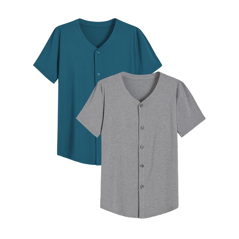 Latuza Men's Bamboo Viscose Button Down Pajama Shirt 2 Pack, Teal/Light Gray, X-Large