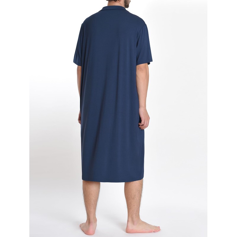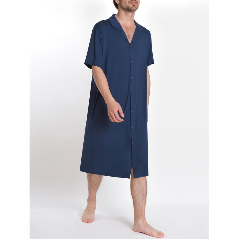 Latuza Men's Bamboo Viscose Nightshirt Button Down Sleep Shirt, Deep Blue, X-Large