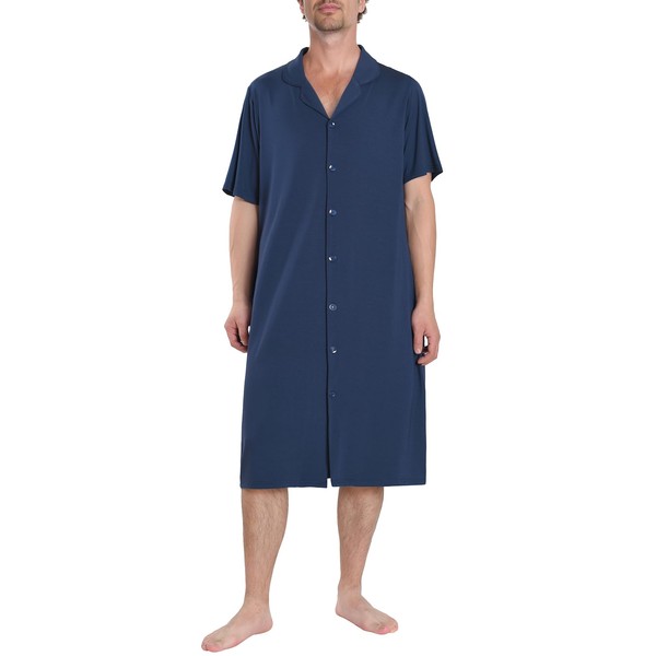 Latuza Men's Bamboo Viscose Nightshirt Button Down Sleep Shirt, Deep Blue, X-...