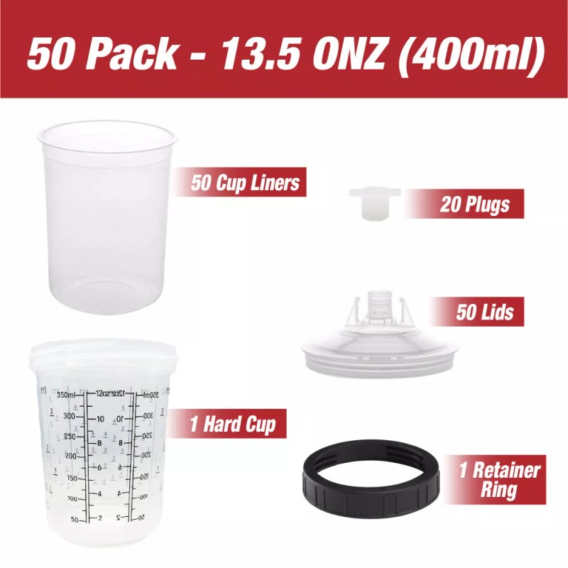Lauco PPS CUPS Disposable Paint Spray Gun Cup Liners and Lid System (190 Mic) 50pack - 400ml/13.5oz